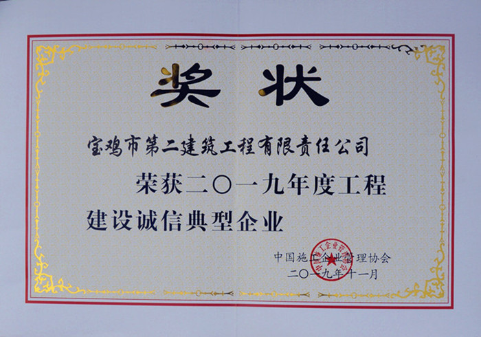 2019年度工程建設(shè)誠(chéng)信典型企業(yè)