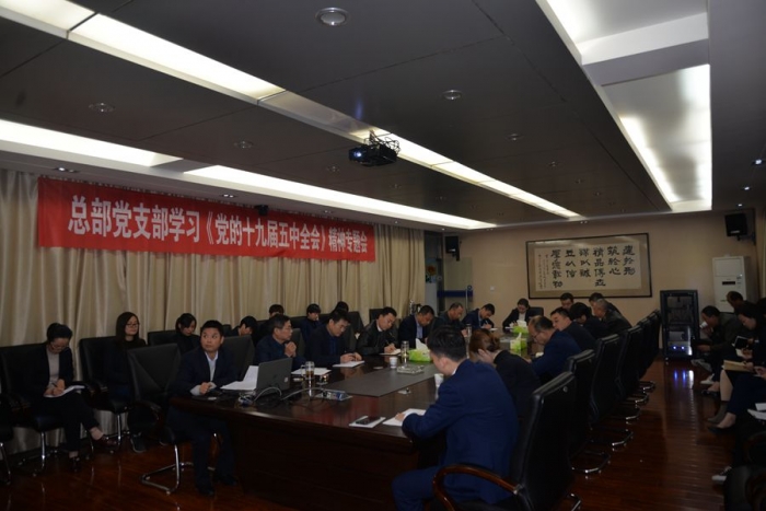 2020年11月10日晚,公司總部黨支部組織召開學(xué)習(xí)貫徹《黨的十九屆五中全會》精神專題會。公司董事長、黨委書記胥立、班子成員及各部門相關(guān)黨員干部共計30余人參會,會議由總部黨支部書記沈為民主持。