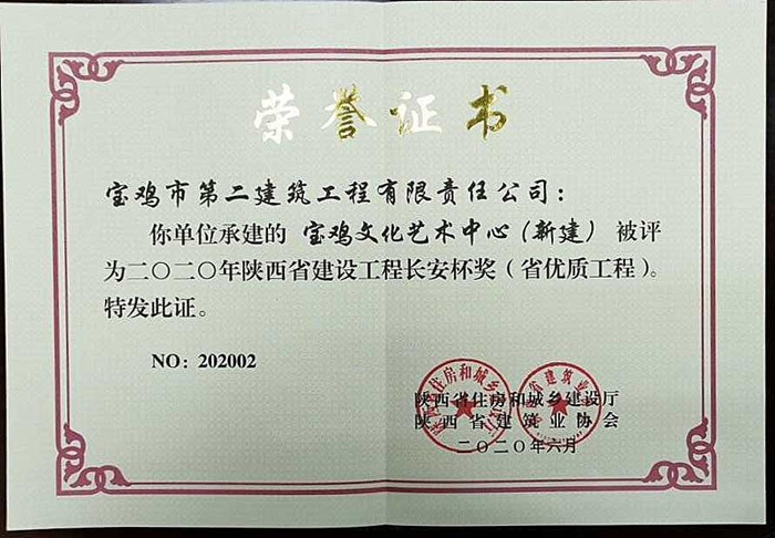 2020年陜西省建設(shè)工程長安杯獎(jiǎng)(寶雞文化藝術(shù)中心)