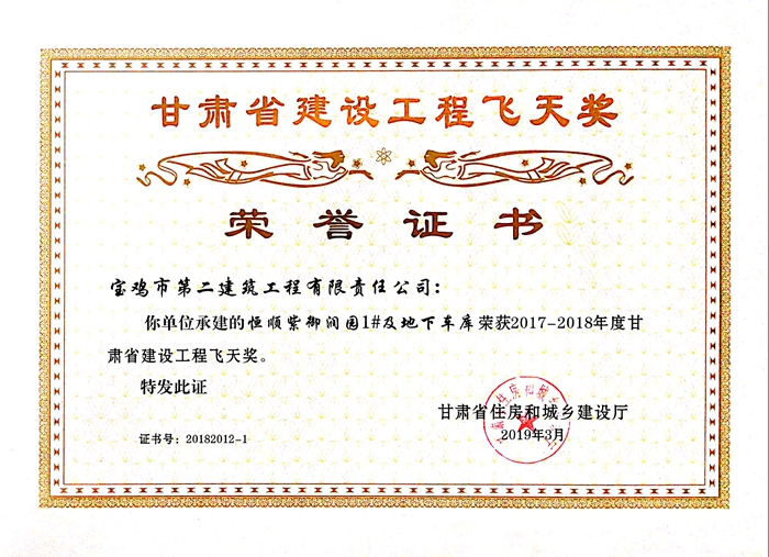 2017-2018年度甘肅省建設(shè)工程飛天獎(jiǎng)(恒順紫御潤(rùn)園1#及地下車庫(kù))