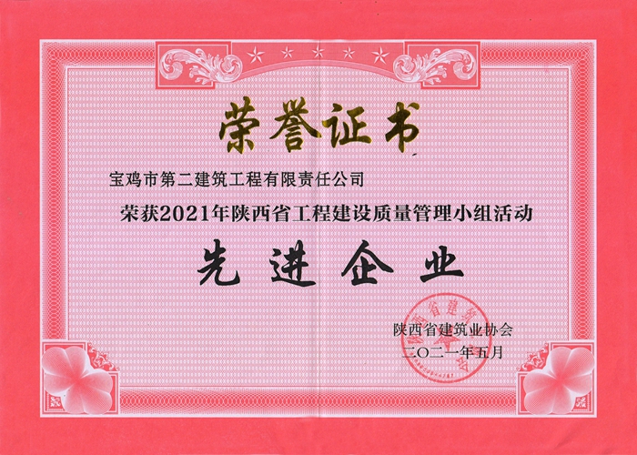 2021年陜西省工程建設質(zhì)量管理小組活動先進企業(yè)