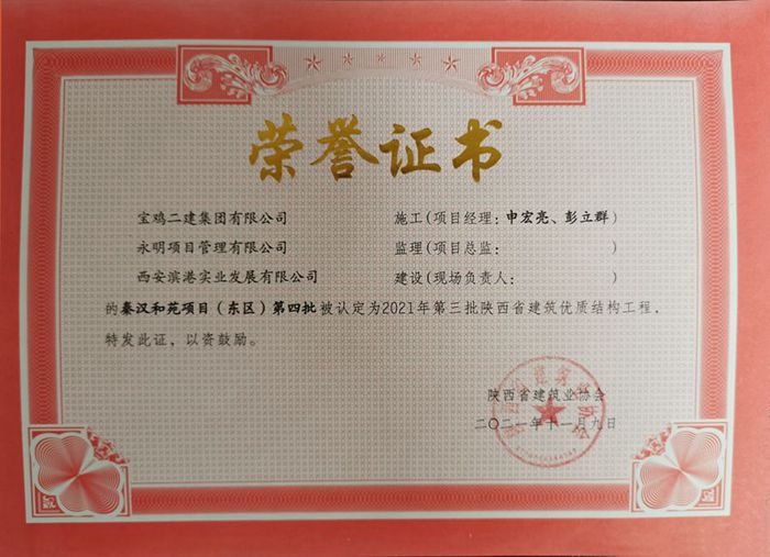 2021年度陜西省建筑優(yōu)質結構工程(秦漢和苑項目(東區(qū))第四批)