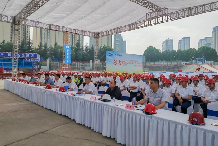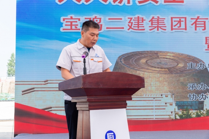 集團(tuán)公司黨委副書記、總經(jīng)理?xiàng)罱?,副總?jīng)理、總會計師嚴(yán)海軍,副總經(jīng)理申小龍出席儀式。集團(tuán)公司總部相關(guān)部門,寶雞片區(qū)各項(xiàng)目部負(fù)責(zé)人、專職安全管理人員及現(xiàn)場施工人員共計150余人參加了本次活動,儀式由副總工程師、工程管理部經(jīng)理郭為群主持。