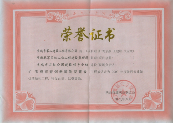 2009年省級優(yōu)質結構工程(青銅器)